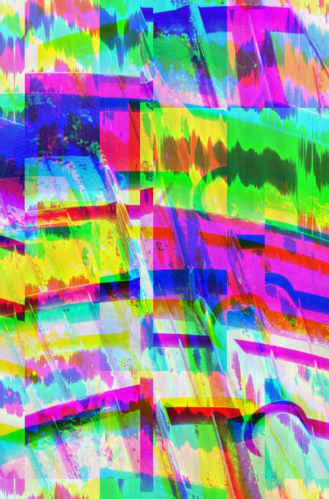 Databending is the process of editing digital files of one media format using software intended for another. These images were edited using software intended to process audio.